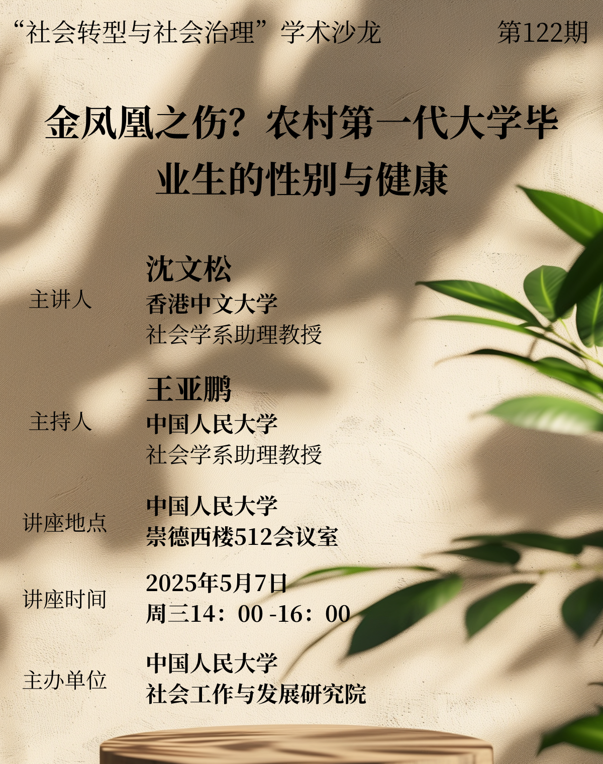 题 目:金凤凰之伤?农村第一代大学毕业生的性别与健康