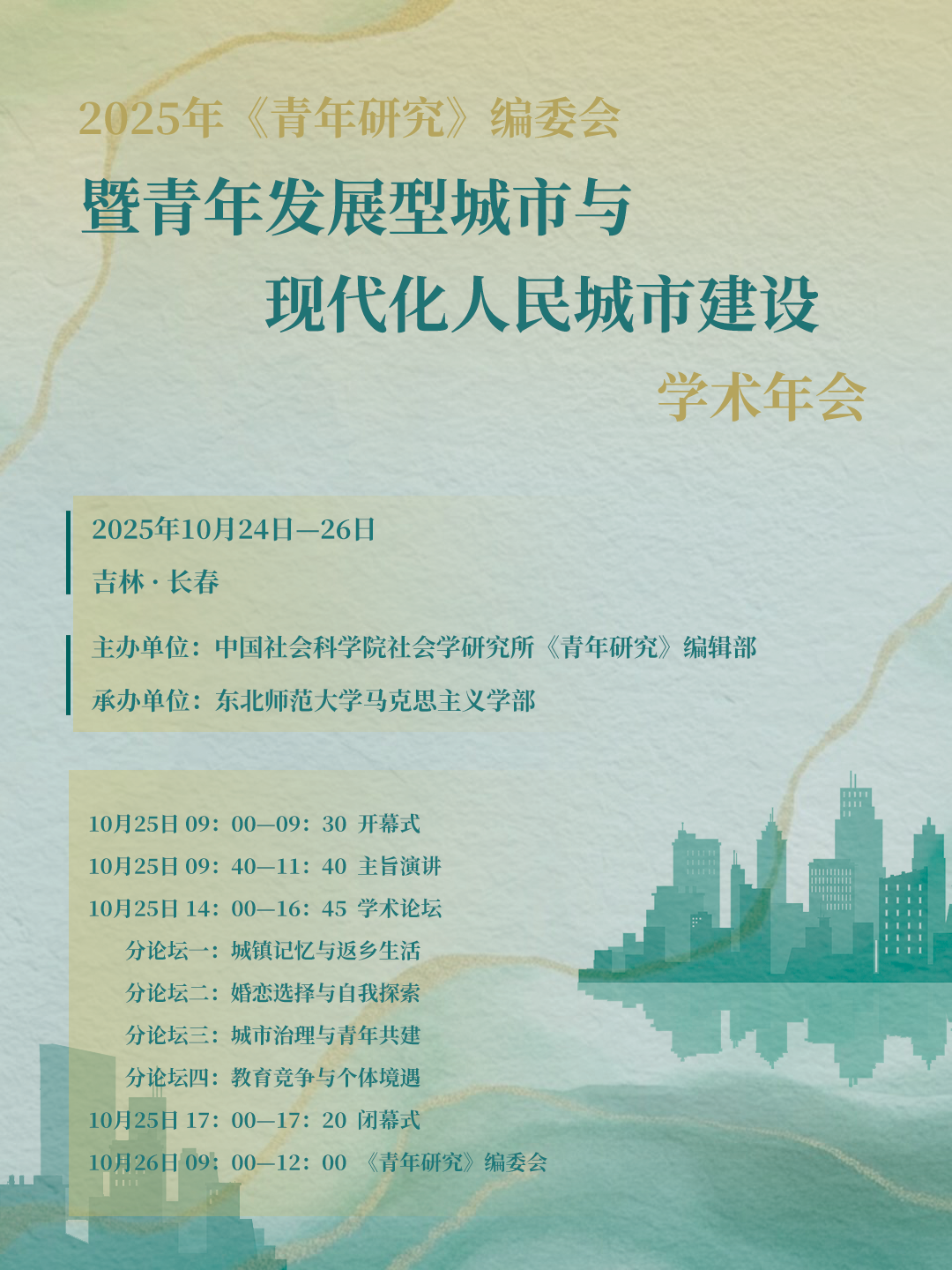 【长春】2025年《青年研究》编委会暨青年发展型城市与现代化人民城市建设学术年会