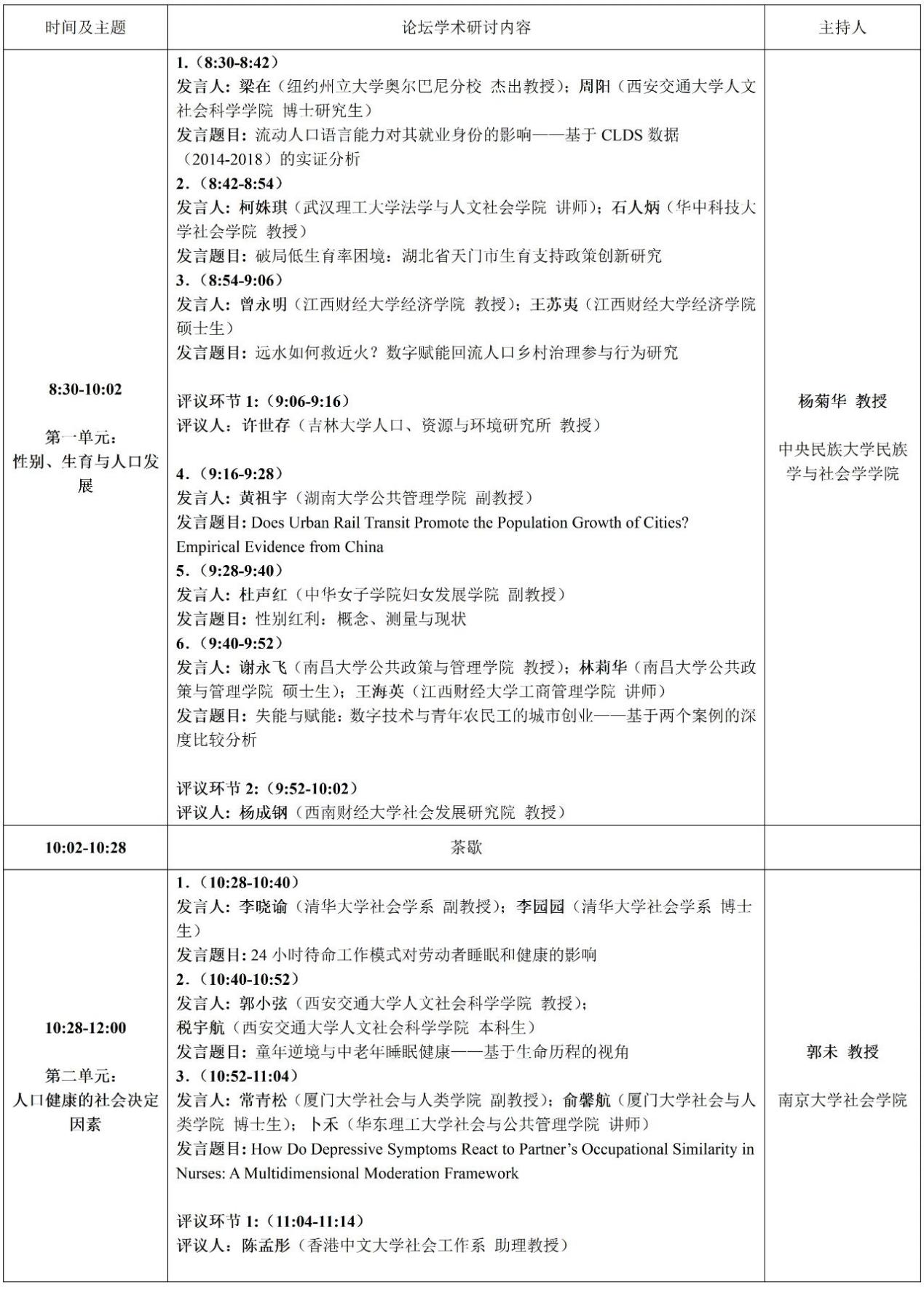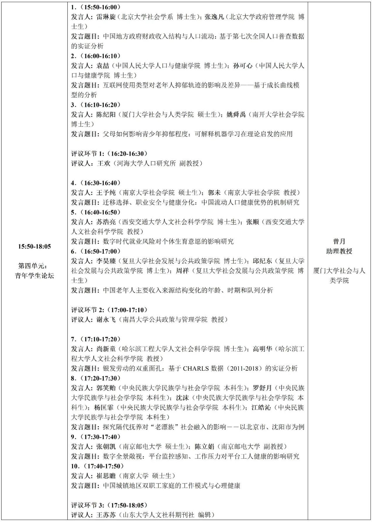论坛负责人: 杨菊华教授(中央民族大学民族学与社会学学院);郭未教授(南京大学社会学院);常青松副教授(厦门大学社会与人类学院)