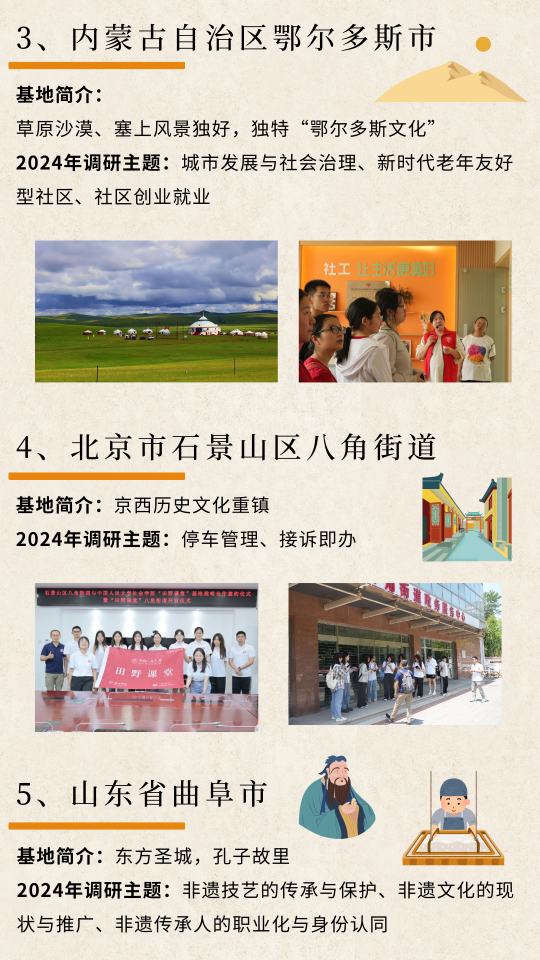 在过去的教学实践中,田野课堂项目取得了丰硕成果。去年,300余名师生奔赴河北定州、山东曲阜、浙江台州、山西昔阳、广西靖西、四川成都、陕西延川、新疆和田、北京八角和内蒙古鄂尔多斯十地开展田野课堂教学,覆盖我国东部、中部和西部三大经济区域。师生们聚焦基层,因地制宜选取33个研究主题,共走访178个政府单位,68个街、镇,98个社区,283个企业和社会组织,完成197场座谈、869人次访谈,回收610份问卷,形成了2168篇、325万字的田野日志,形成了一批专题调研报告。同学们的人际交往能力、团队合作能力、调查访谈能力、问题分析能力、报告撰写能力得到快速提高,学校课堂上概念、理论、方法与生动的社会现实相融合,从而得到更好的理解、掌握和应用,书本上的社会科学变成行动中的社会科学。经过几年的发展,我们积累了丰富的教学经验,与各基地结下了深厚友的谊,为学校、学院、学科和学生积累了丰厚的“社会资本”,为“田野课堂”的开展奠定了基础。
