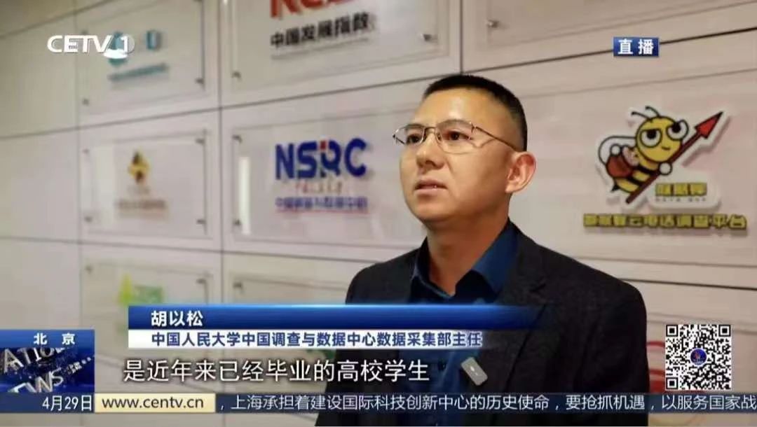 2025年4月29日,中国教育电视台《全国教育新闻联播》节目聚焦中国人民大学助力毕业生“职”通未来的五大专项行动。作为学校就业工作的重要支撑力量,中国人民大学中国调查与数据中心(以下简称“调查中心”)采集部主任胡以松接受了专题采访,并详细介绍了调查中心在高校毕业生就业调查领域的关键工作与成果。