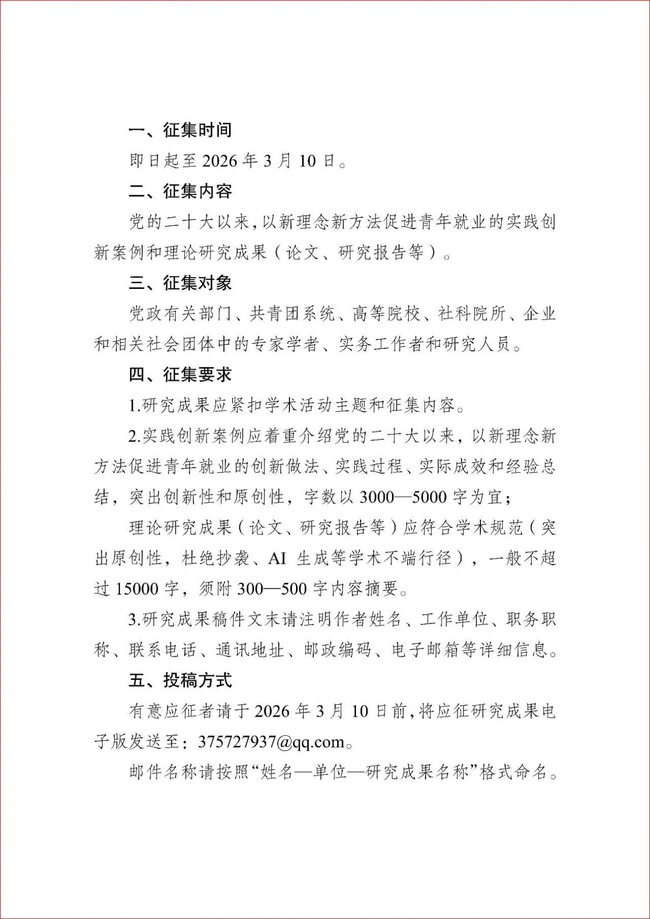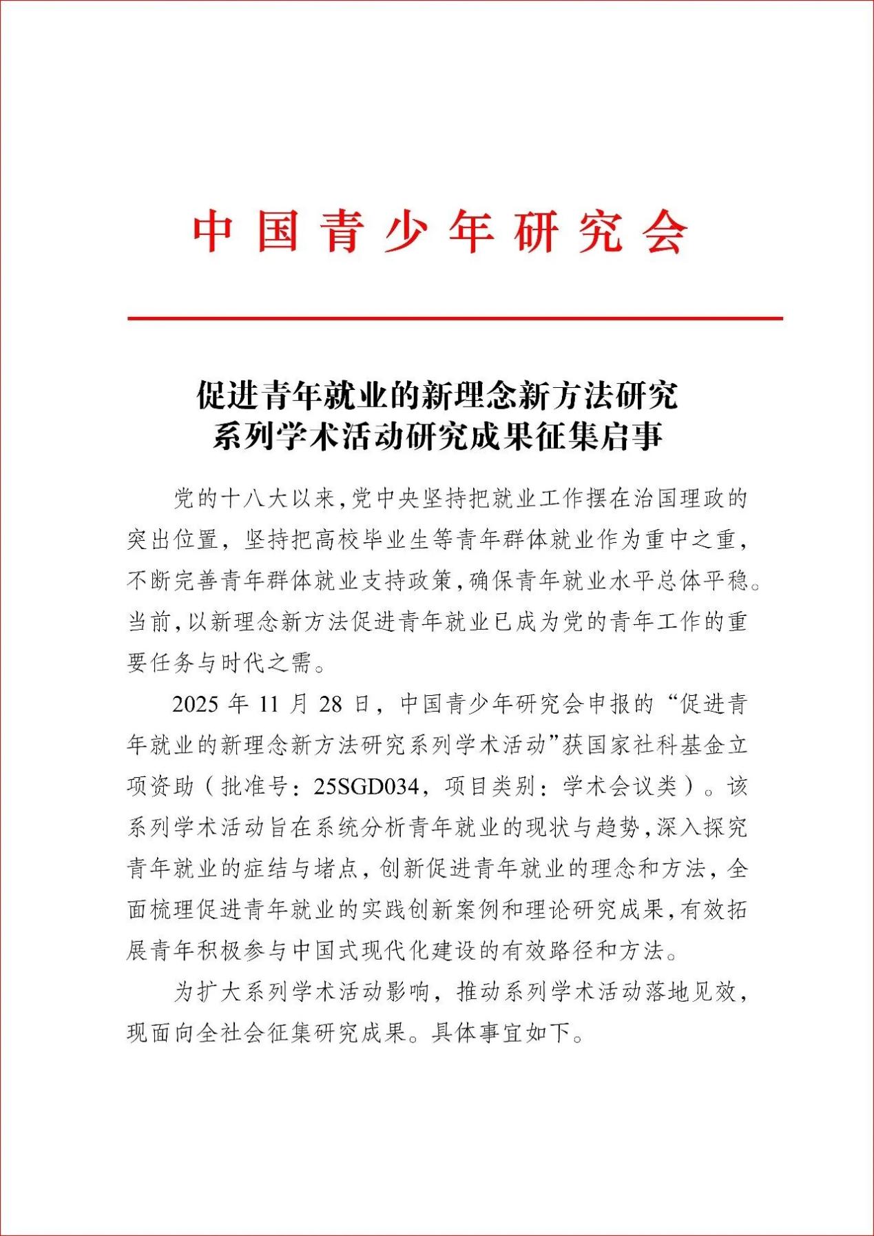 【成果征集】促进青年就业的新理念新方法研究系列学术活动研究成果征集启事