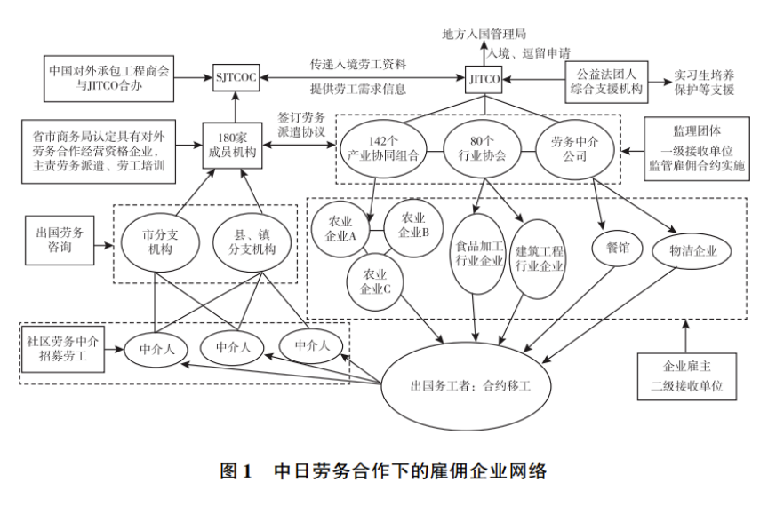 考察跨国雇佣关系能够清楚地看见国家制度对企业网络的影响。日本外劳输入政策赋予JITCO特别地位,使JITCO-SJTCOC处在中日劳务合作企业网的结构洞位置。日方非营利组织和行业组合合作能够避免组织联合欺诈。新加坡政府通过移民管理政策和利益捆绑方式来控制劳雇双方的违约风险。企业直接对接的市场效率最高,但也不能完全避免雇主和劳务公司因营利目标一致而结成利益同盟,欺骗国家。中韩两国规定劳务合作只能由韩国人力工团和中国商务部负责,严禁其他个体介入。两边的执行机构与雇主或者劳工都不存在责任连带关系,合作规模始终有限。
