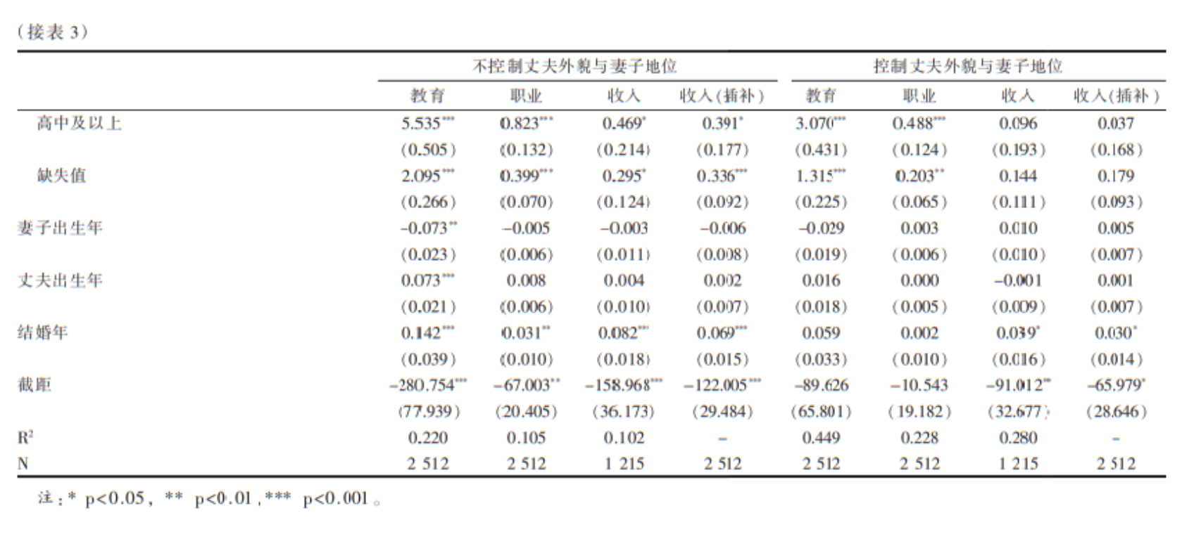 假设3:在进行充分的统计控制之后,外貌—地位交换的强度会大幅下降,甚至完全消失。