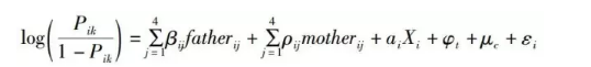 本文采用二元逻辑斯蒂回归模型(BinaryLogistic Regression),对父母宗教信仰的代际传承进行分析。所用模型如下: